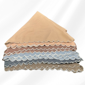 Lightweight 45″ hijab with mixed color borders, available in 17 colors. Soft, stylish, and perfect for everyday wear only at Vaylis.